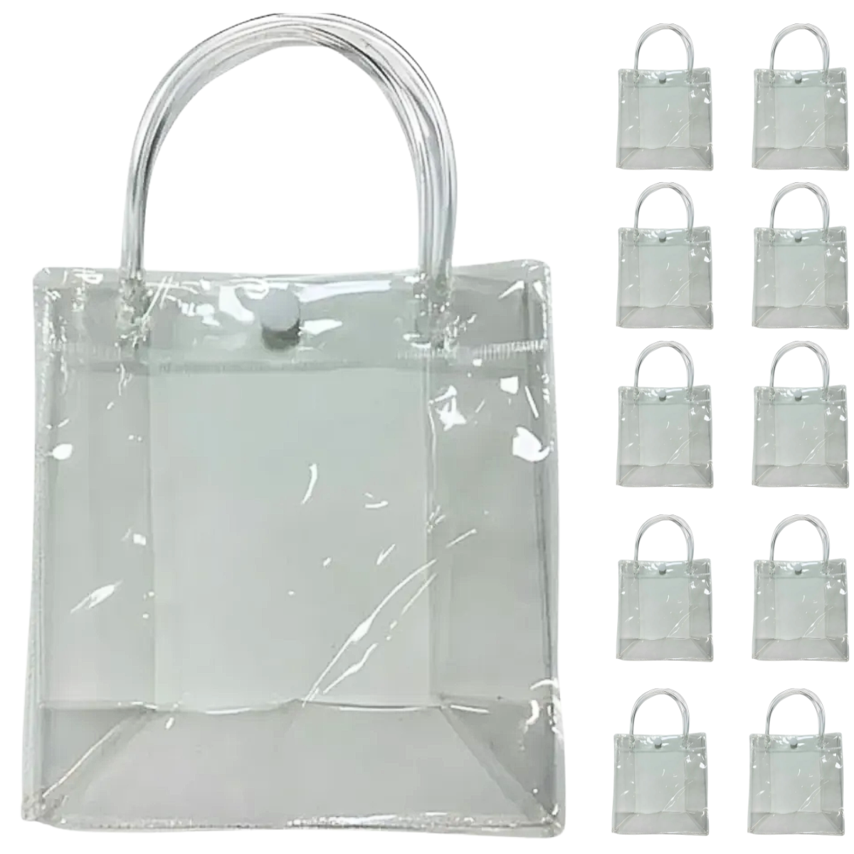 Kit 10 Sacolas Plásticas Transparentes PVC com Alça e Botão de Pressão – 40x30 cm